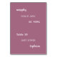 Nom d'hôte Carte Mauve Meal Choice Place avec texte blanc élégant sur un bel arrière - plan de couleur mauve clair. Veuillez utiliser le modèle de personnalisation en ligne pour personnaliser chaque carte de place individuellement avant d'ajouter la carte au panier, pour montrer le numéro de table pour la table particulière où le client doit être assis, le nom du client et le choix de repas (ou restriction alimentaire) pour le client. (Répétez le processus de personnalisation pour chaque carte que vous souhaitez acheter, en ajoutant la carte au panier individuellement à chaque fois). Cette carte de place imprimée arrivera à plat et il faudra donc plier en deux avant de l'utiliser. (La taille avant pliage est d'environ 5 po de hauteur par 3,5 po de largeur, destinée à être pliée de sorte qu'environ 2,5 po par 3,5 po après pliage). Une fois la carte imprimée pliée, le même libellé apparaîtra de chaque côté (de façon à être visible des deux côtés d'une table). Une carte de visite personnalisée pour un mariage élégant ou pour toute autre occasion spéciale.