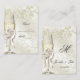 Nom du mariage Lieu Cartes Gold Crème Pearl Floral Roses Fleurs Champagne Verre élégant Siège Numéro de table. dîner réception