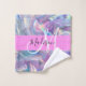 Nom monogramme irisé holographique rose, violet et aqua et linge de toilette initial. Votre nom personnalisé et votre monogramme sont écrits dans un élégant script écrit à la main avec un arrière - plan rose. Un cadeau d'anniversaire ou de Noël parfait !