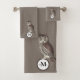 Chouette d'aquarelle rustique Nom Monogramme Serviettes Brown/grises | Doté d'un modèle facile à personnaliser, ce design est à la fois élégant et unique. Ces serviettes sont de grands cadeaux pour les hommes, les femmes et les enfants, et vous aussi, bien sûr !
