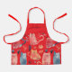 Joli motif de chat aquarelle sur l'apron de nom de script rouge. Personnalisez avec le nom.