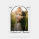 Célébrez et commémorez votre mariage avec ce magnifique panneau photo acrylique personnalisé. Le joli plan minimaliste comprend de l'espace pour votre photo verticale à la forme à demi-arcade. Votre photo inclut automatiquement une fine bordure noire. Le design inclut également le contour des vignes sous votre date de mariage personnalisée. En bas, en cursive magnifique, utilisez les modèles pour ajouter facilement les noms du couple heureux ou tout texte que vous choisissez. Utilisez l'outil de conception plus avancé pour modifier les polices ou la taille du texte.