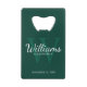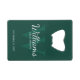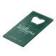 Ajoutez une touche personnelle à votre mariage grâce à l'ouvre-bouteille personnalisé des groomsmen carte de crédit. Ce ouvre-bouteille contient le nom du marionnettiste personnalisé en style de police de script classique blanc avec des détails mariages en style de police serif classique blanc et monogramme en style de police serif classique vert émeraude clair en arrière - plan, sur arrière - plan vert émeraude. Parfait aussi pour le meilleur homme, père de la mariée, porteur de bague et plus.