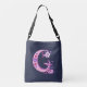 Joli nom de monogramme G dessiné à la main et la conception de sac. Idéal pour un cadeau personnalisé pour une fille qui a un nom commençant par G. Cet exemple montre Gemma Un bijou précieux, brillant et précieux ou vous pouvez customiser le texte avec votre propre nom et des mots de signification si nécessaire. Couleur Arrière - plan actuellement bleu marine, mais vous pouvez également changer cela à votre propre choix de couleur si nécessaire. Idéal comme cadeau spécial d'anniversaire ou de fête. Si vous avez besoin d'aide avec votre propre nom personnalisé, veuillez me contacter. Lettre majuscule G coeurs typographiques et fleurs dessin et conversion graphique dans les tons rose vif et violet © unique texte et design d'art par Sarah Trett. www.sarahtrett.com pour www.mylittleeden.com