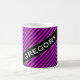 Caractéristiques de conception ce de tasse un motif simple des lignes/des rayures noires et fuchsia alternatives. Il comporte également un nom fait sur commande en texte coloré par blanc dans un secteur coloré par obscurité, avec tous les deux sous un angle. [~Z0000051]