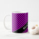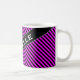 Caractéristiques de conception ce de tasse un motif simple des lignes/des rayures noires et fuchsia alternatives. Il comporte également un nom customisé en texte coloré par blanc dans un secteur coloré par obscurité, avec tous les deux sous un angle. [~Z0000051]