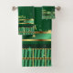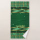 Une serviette de bain vert émeraude que l'on ne trouve qu'ici. Elle est élégante et belle et est faite de bandes dorées horizontales, et est personnalisée. Remplacez le nom par le vôtre.