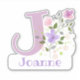 Personnalisez n'importe quel article avec un nom et une initiale avec un autocollant de découpe Floral Design. Le nom de l'exemple est Joanne.