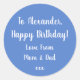 Gardez-le simple avec cet autocollant classique étiquette pastel bleu & blanc. Ce design personnalisé a le message "À Alexandre, Joyeux anniversaire! Love From Mom & Dad xxx" en typographie/script blanc. Dans un script tendance bleu clair et élégant, il est parfait pour votre enveloppement cadeau personnalisé et.anniversaire célébration. Ajoutez simplement vos noms à l'aide de la zone de texte personnalisée. Changez la couleur en une étape de plus en utilisant l'outil d'édition de design! Parfait pour les étiquettes cadeaux, les cartes et les scellés d'enveloppe! Pour obtenir de l'aide sur la personnalisation ou pour un design personnalisé, contactez-moi par zazzle conversation ou email : ursuladawnmoon@gmail.com