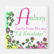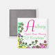 Joli aimant floral vert et rose avec le nom anglais Aubrey signifiant Connaissance des elfes.