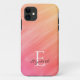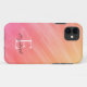 Cette élégante coque iphone est décorée dans des tons orange et corail, avec un design de lave à l'aquarelle. Facilement personnalisable avec votre nom, et monogramme. Utilisez l'option Personnaliser supplémentaire pour modifier la taille, le style ou la couleur du texte si vous le souhaitez.