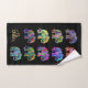 Cette belle serviette personnalisée est décorée d'éléphants magnifiquement colorés et ornementaux qui varient en vitalité et en teinte, et qui brillent contre un arrière - plan noir branché. Un design original disponible exclusivement au magasin en ligne ©EleSil. Tous droits réservés.