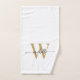 Serviette de main personnalisée girly, féminine, élégante et moderne, avec monogramme initial en or et blanc. Caractérisée par un prénom (ou nom de famille) dans un style calligraphique à queue en forme de feston (ou calligraphie) avec monogramme initial en or et noir sur fond blanc. Cadeau de pendaison de crémaillère élégant et féminin, également pour un anniversaire, une fête des 16 ans, un enterrement de vie de jeune fille, un shower de mariage, un mariage, la fête des mères, un anniversaire de mariage et pour une fête de fin d'études, et c'est pour la fille qui aime les choses élégantes et stylées.
