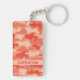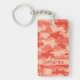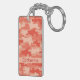 Appréciez ces amusement et porte - clé élégant personnalisés avec un nom et une conception à la mode colorée de camo. Ce camouflage est art original aux nuances d'orange et la bande orange-clair des couleurs A de corail fournit un secteur pour personnaliser avec votre nom, initiales de monogramme ou d'autres mots de votre choix tels que la raison sociale ou dire. Cette conception mignonne et à la mode de camo est par l'artiste et le concepteur Phyllis Dobbs de tissu et est disponible dans le camo de rouge, de turquoise, de bleu, de vert de chaux, de vert olive, de rose, gris et brun sur de divers produits pour votre plaisir ou pour de grands cadeaux. Ayez l'amusement avec le camouflage ! Entièrement personnalisable pour la personnalisation.