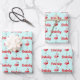 Fun flamingo feuilles de papier d'emballage de Noël avec un nom personnalisable et un motif de flamants roses dans les tenues Père Noël sur un arrière - plan bleu tropical. Ajoutez simplement le nom que vous avez choisi, ajoutez ces feuilles de papier d'emballage à votre panier, puis amusez-vous et joyeux Noël. Nom Père Noël Flamant rose Noël Enveloppement Feuilles de papier Fête Conception | ©Melissa Patton - Artiste/Illustrateur