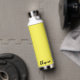 Cette bouteille d'eau isolée est présentée en blanc avec une couleur d'accent jaune ensoleillé et un échantillon de nom personnalisé. Customisez cet article et changez le nom de l'exemple en votre nom.