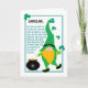 Un plaisir sur la carte de voeux de St. Patrick pour vous de customiser avec un nom, avec un joli leprechaun dansant, tenant un shamrock, à côté d'une casserole d'or. Il y a une bordure vert foncé, doublée et la Prière celtique d'origine, en lettres vertes, à côté du leprechaun. Le leprechaun a un très grand casquette, dans un motif vert, une grande barbe de gingembre, un nez énorme, des manches rayées et des chaussettes et des chaussures noires avec des boucles pour assortir son bandeau. En haut de l'espace pour ajouter un nom et le message intérieur est facile à customiser ou à supprimer.