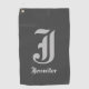 Ce modèle de serviette de golf vintage comporte un nom personnalisable et une lettre initiale. Une serviette de golf comme celle-ci pourrait être un cadeau amusant personnalisé pour quelqu'un qui aime jouer au golf. [~Z0000440]