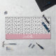 Un design de bureau mignon qui a un motif de pois noir et blanc et, en bas, il y a une bordure rose sombre où vous pouvez customiser la typographie blanche avec votre nom.