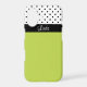 Ajoutez un peu de plaisir et de style à votre téléphone avec ce nom personnalisé élégant pomme vert, noir et blanc coque iphone pois! La coque est dotée d'un motif à pois amusant avec des points verts, noirs et blancs alternant, donnant à votre téléphone un aspect unique et élégant. Le coque dispose également d'ouvertures pour tous les ports et boutons de votre téléphone, vous permettant d'y accéder facilement tout en gardant votre téléphone en sécurité. Le coque est fabriqué avec un matériau durable et protecteur qui est sûr de garder votre téléphone à l'abri des rayures, des bosses, et d'autres usures et déchirures. Avec ce coque vert acide, vous pouvez faire une déclaration et élever votre look tout en gardant votre téléphone en sécurité.