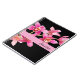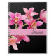 Carnet avec une couleur arrière - plan noire avec une belle impression graphique de fleurs d'orchidées roses et un échantillon de nom. Customisez cet objet et changez le nom en votre nom.