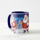 Nom personnalisé tasse à café de Noël, Jolly Santas. bleu combo.