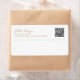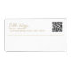Étiquette d'expédition d'affaires en faux or moderne et professionnel avec un design simple et minimal avec votre nom dans un script élégant et votre adresse de retour dans la police sans serif contemporaine dans une disposition minimaliste. À droite se trouve un code QR optionnel. Si vous préférez, le code QR peut être supprimé dans l'outil d'édition de conception.