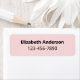 Cette étiquette d'adresse de retour avec numéro de téléphone comporte deux lignes de texte noir. La ligne supérieure pour le nom est en gras. L'autre ligne est destinée au numéro de téléphone. Tout le texte peut être modifié ou supprimé. Les étiquettes d'adresse de retour avec numéro de téléphone peuvent être utiles pour étiqueter des objets qui pourraient facilement être perdus. Ces étiquettes rose pâle sont également utiles pour identifier les objets que les enfants emmènent à l'école. Vous pouvez vouloir utiliser ces étiquettes comme ex-libris pour identifier à qui appartient un livre.