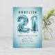 Fêtez un jalon dans le style chatoyant avec notre Invitation du 21e anniversaire des Nombres Ballons! Conçu avec des ballons d'aquarelle turquoises en imitation métallique, cet invitation accrocheur donne le ton pour une fête amusante et inoubliable. Les élégantes teintes turquoises et le design éclatant de l'aquarelle ajoutent une touche moderne et sophistiquée, tandis que les ballons numériques audacieux "21" occupent le devant de la scène, parfaits pour marquer ce moment unique. Que vous planifiez une fête d'anniversaire, une réunion de jardins ou un dîner en famille ou entre amis, cette invitation apporte un juste équilibre entre ludique et poli. Entièrement personnalisable avec votre nom, date/heure et détails de fête, il est facile de le rendre unique à vous. Imprimé sur papier de haute qualité avec des couleurs vives, vos invitations paraîtront aussi extraordinaires que votre événement le ressent. Rendez votre 21ème anniversaire encore plus spécial - invitation vos invités avec un design aussi dynamique et élégant que vous êtes !