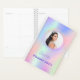 Un arrière - plan holographique branché aux couleurs pastel unicorne et arc-en-ciel rose, violet, vert menthe. Personnalisez et ajoutez une photo, un nom et une année. Lettres violettes.