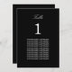 Noms d'hôtes Elégante carte de table noire, facile à personnaliser dans le modèle de personnalisation en ligne afin de montrer le numéro de table pour la table appropriée et les noms d'invités pour cette table. Le design se copie automatiquement de l'autre côté de la carte afin d'aider les clients à trouver leur table de chaque côté de la table. Disposant d'un design simple et minimaliste, cette carte de table design intègre de l'espace autour des éléments de texte pour permettre le choix de méthodes d'affichage telles que la suspension ou le cadrage de la carte.