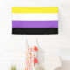Non-binary people may identify as having two or more genders; having no gender; moving between genders or having a fluctuating gender identity; or being third gender or other-gendered, a category that includes those who do not place a name to their gender. Each stripe colour represents different types of non-binary identities: Yellow for people who identify outside of the gender binary, white for nonbinary people with multiple genders, purple for those with a mixture of both male and female genders, and black for agender individuals.
