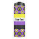 Thermal tumbler with the non-binary pride flag and a seamless modern geometric flower pattern in the colours of the pride flag; a yellow, white, purple, and black enby pride design on a purple background with an editable text template for your name or message