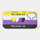 iPhone 17 Case with the non-binary pride flag with little hearts in the center of the design. Black, purple, white, and yellow flag of the enby pride movement; with an editable text field for your name or message