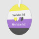 Christmas ornament with the lipstick non-binary pride flag with little hearts in the centre of the design. Yellow, white, purple, and black flag of the enby pride movement; with an editable text field for your name or message; a great way to decorate your Christmas tree :D