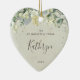 Hand painted snowberries and stems of eucalyptus form a border across the top of this heart shaped ornament. All text is fully editable so you can easily change the wording and change the font style/color/size/placement. Another version is available with a photograph on the back.