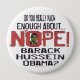 Do you really know enough about Barack Hussein Obama? Research Obama's alledged connection to Ayers, Wright and Rezko. Do the research and Get your Nope anti Obama shirts, buttons, stickers, hats and more today. We need answers.