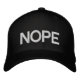 Fits well due to elastic edging, not adjustable. Good qualty material. Good quality embroidering. Subtle lettering (white on beige) just as my wife likes.