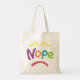 Nope design features hand drawn "Nope" lettering, with hair above and a downturned mouth below. A fun way of saying Nope.