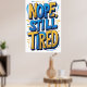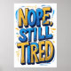 Une affiche de typographie sarcastique dessinée à la main avec l'expression "Nope, Still Fatired" en lettres expressives. Un art mural idéal pour les chambres, les dortoirs ou les bureaux, et un cadeau amusant pour quiconque aime l'humour et les citations pertinentes.