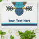 A cute owl in brown and blue, done in Nordic folk art style. Customize by adding your own text. You may remove the blue stripes, and change the font as well as the text colour.