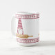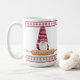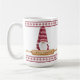 This Scandinavian inspired mug design features a Nordic Gnome wearing red and white fair isle attire with text that reads "Lefse Tester." The border around the bottom and top has a coordinating fair isle pattern.