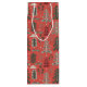 Nordic Green and White Tree Pattern on Red Wine Gift Bag