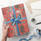Nordic Green and White Tree Pattern on Red Wrapping Paper