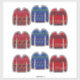 A nordic sweater pattern featuring evergreen trees, moose and snowflakes. Done in colours of red, yellow, green, blue. Perfect for scrapbooking, crafts and gifts.