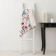 This attractive sherpa blanket has a beautiful and intricate Nordic or Scandinavian pattern in blue grey, red, and white. Images include floral designs, a decorated pony, hearts and line drawings. Unique and very pretty!