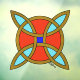 This apotropaic symbol/design supposedly protects against witchcraft, negativity, and evil. This version also features the colours gold, turquoise, red, and blue, considered protective in various cultures.