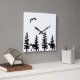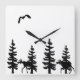 Pine trees and two moose in black. With an eagle flying above the forest. The black silhouettes are inspired by the nordic and Scandinavian woods. White background, transparent background so you may add a colour to match your home interior. Without clock numbers