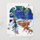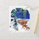 Send this beautifully illustrated Postcard featuring Northern Lights over a colorful village with Santa riding a Moose, a beaver holding a star, a snowman, and a Fairy ringing in a New year to your family or friends for welcoming the New Year or Christmas celebration.