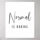 This design is composed of the phrase "Normal is Boring" which is a typography poster wall art that features a clean and modern design that is perfect for brightening up and adding some personality to any space. This lovely print can be personalized further by adding your own custom text, as well as changing the colours. This design has a modern feel and would look great in a modern apartment or loft space.